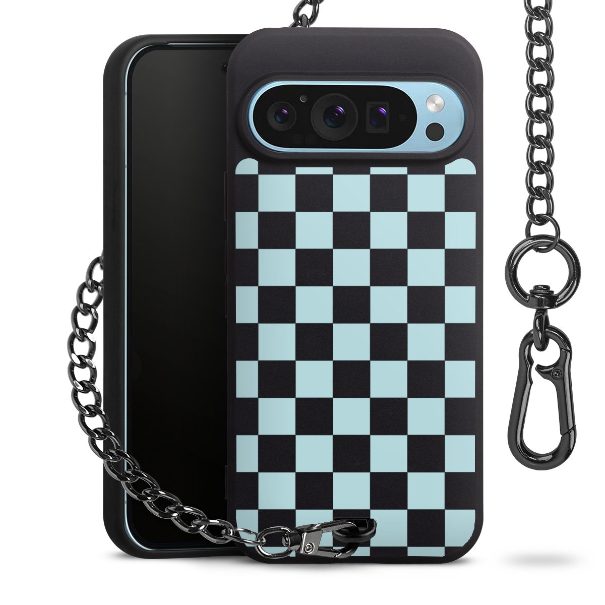 • Mattschwarze Handyhülle mit Metallkette
