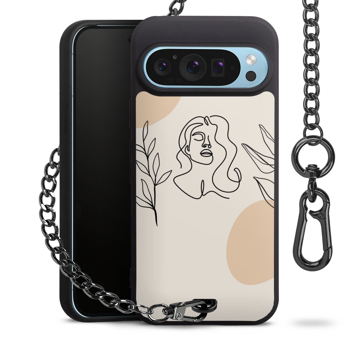 - Mattschwarze Handyhülle mit Metallkette