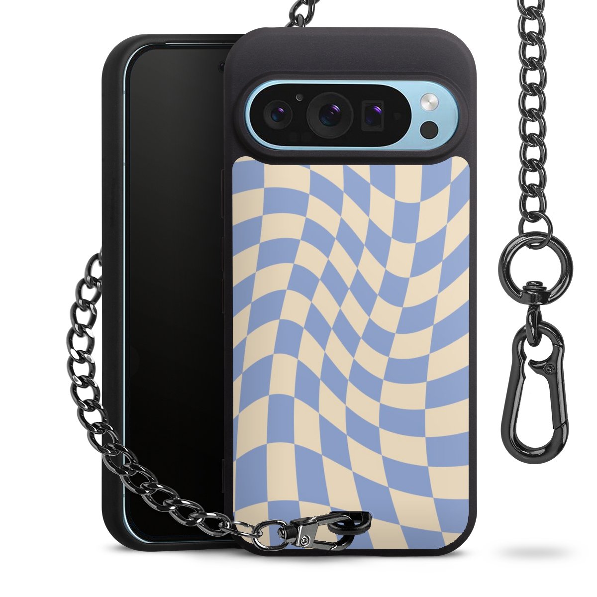 - Mattschwarze Handyhülle mit Metallkette