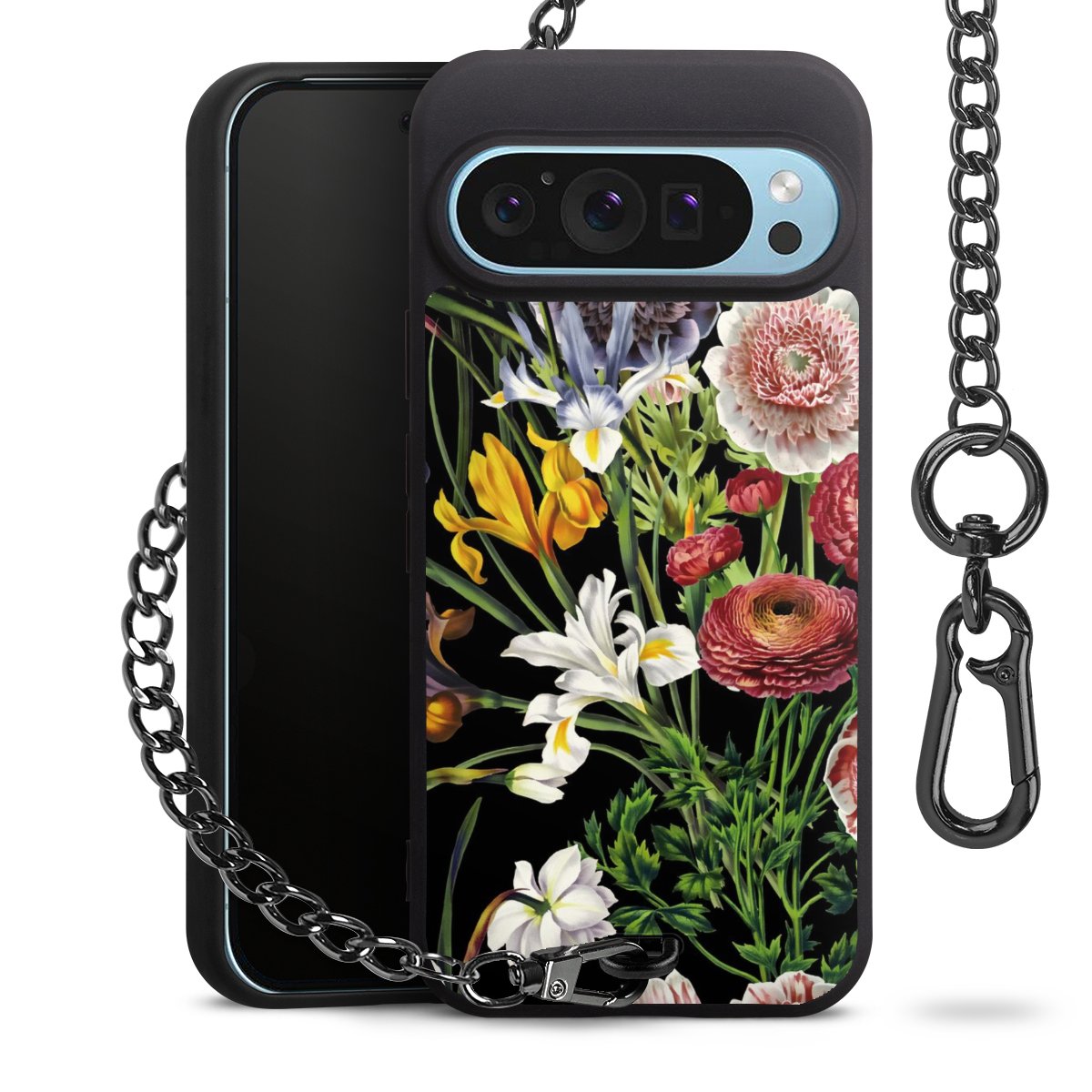 • Mattschwarze Handyhülle mit Metallkette