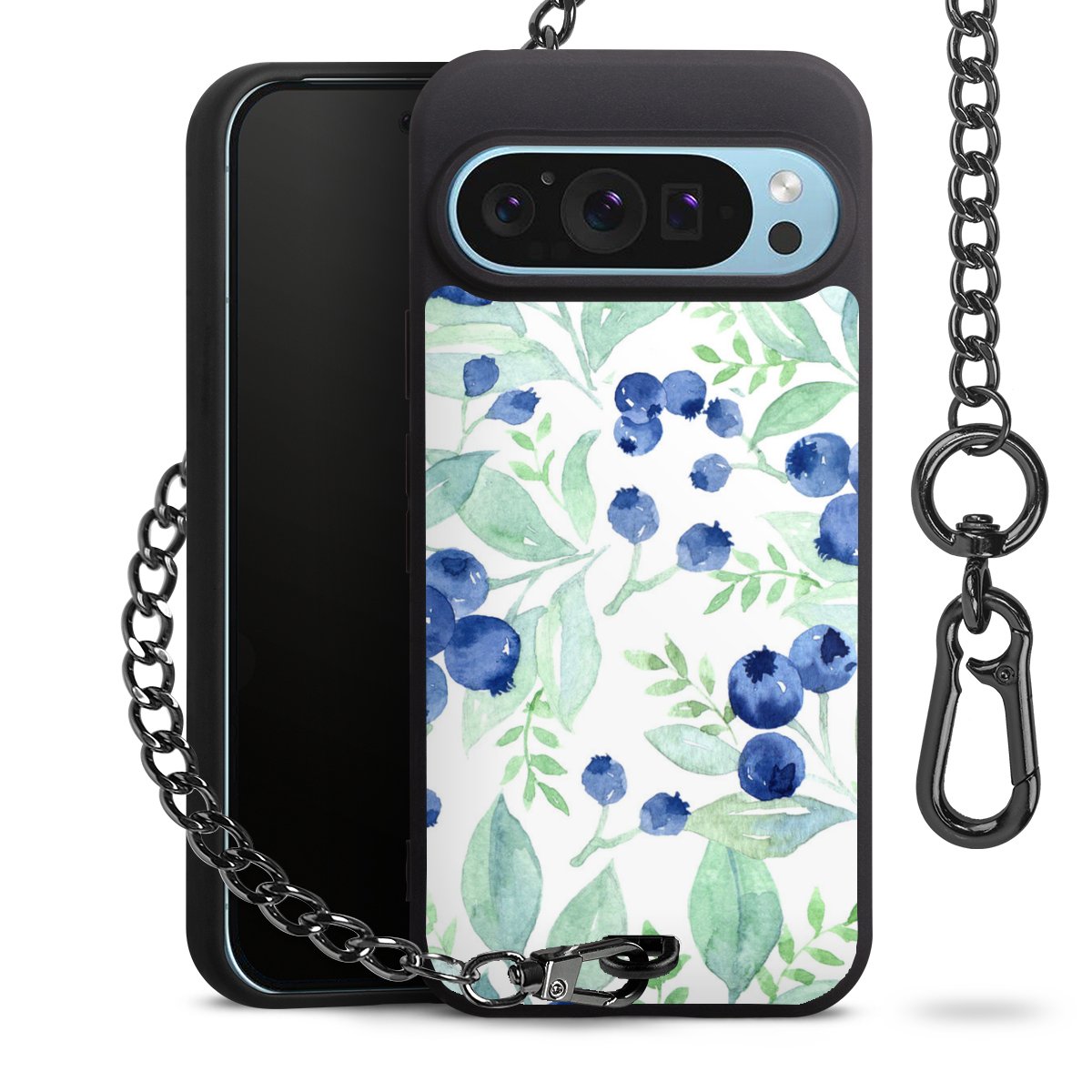 • Mattschwarze Handyhülle mit Metallkette