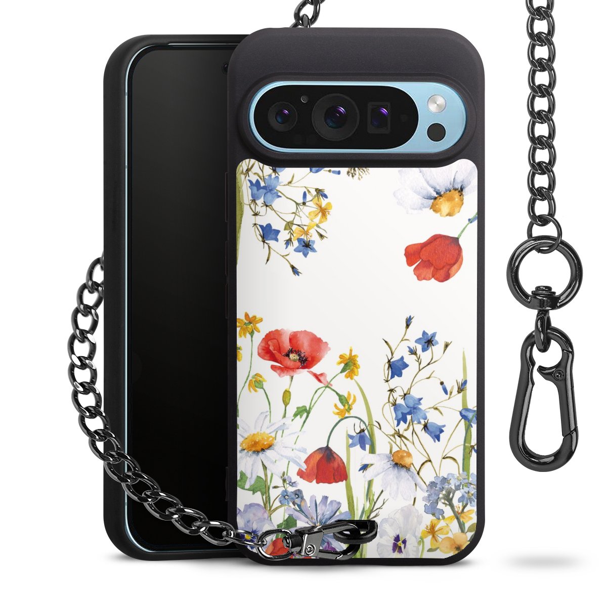 • Mattschwarze Handyhülle mit Metallkette