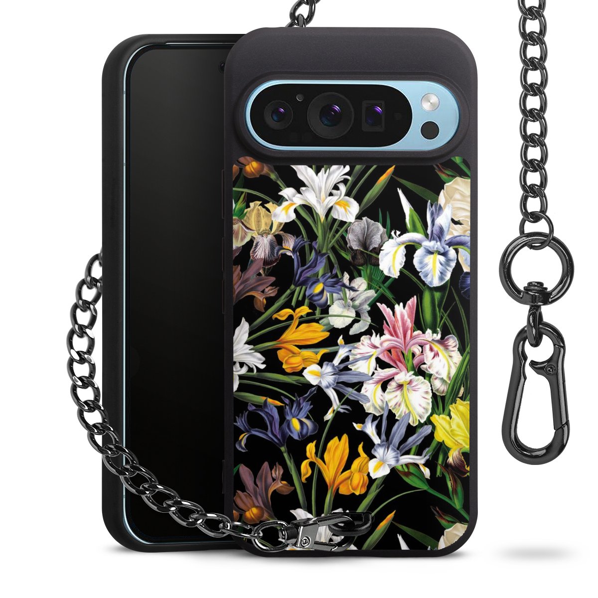 • Mattschwarze Handyhülle mit Metallkette