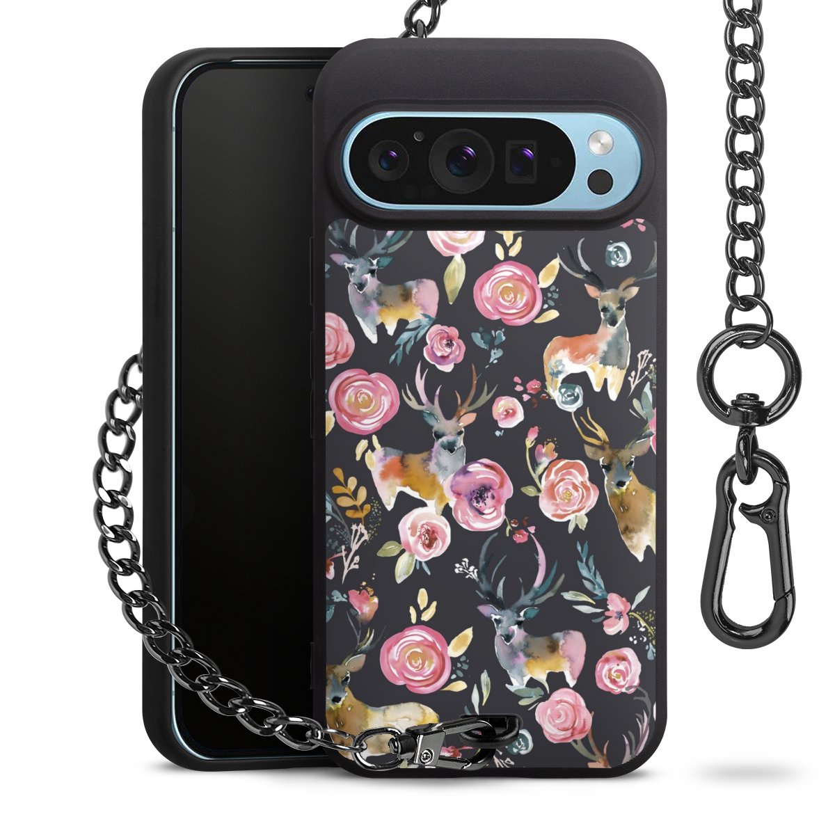 • Mattschwarze Handyhülle mit Metallkette
