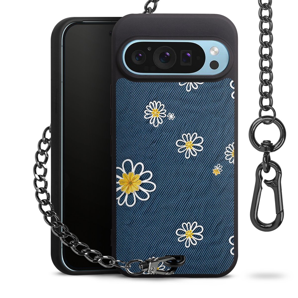 - Mattschwarze Handyhülle mit Metallkette