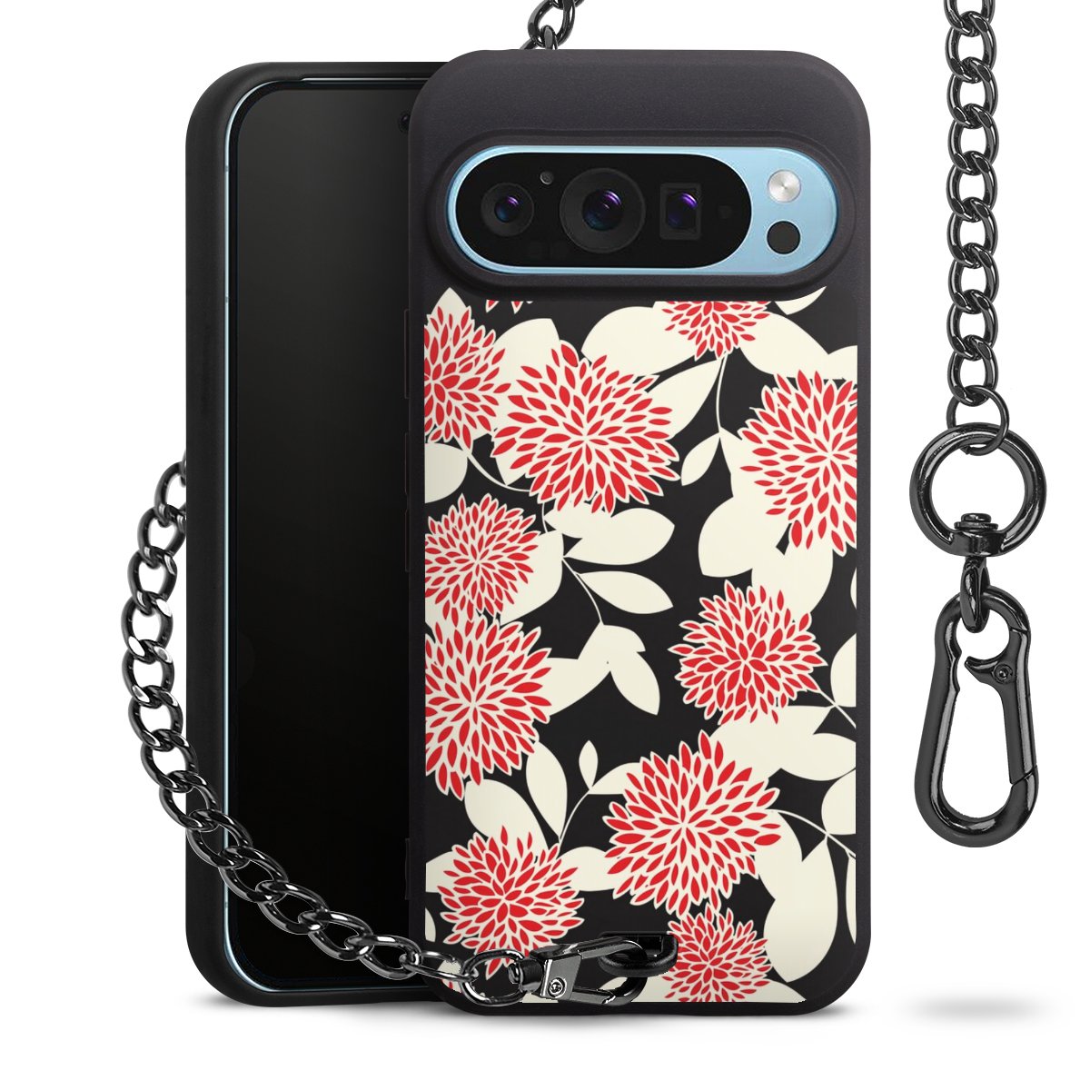 - Mattschwarze Handyhülle mit Metallkette