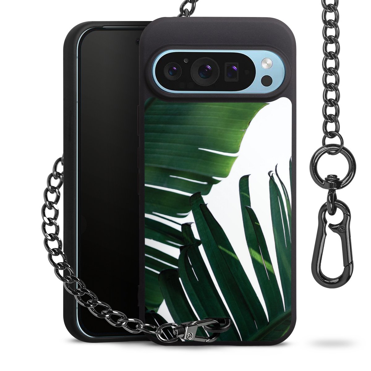 • Mattschwarze Handyhülle mit Metallkette