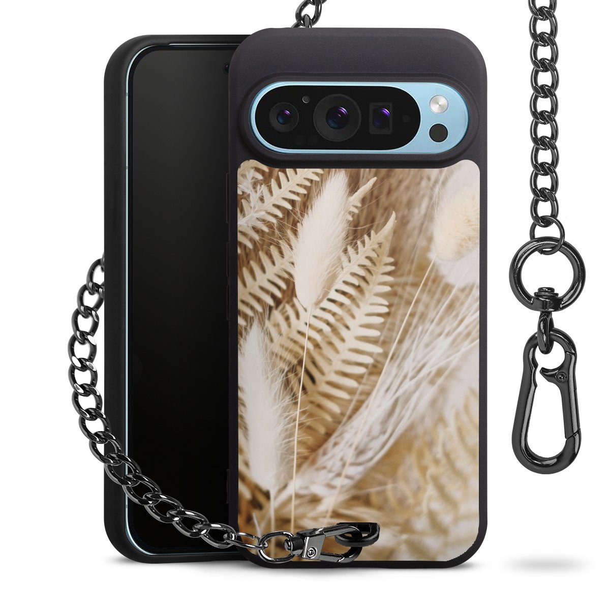- Mattschwarze Handyhülle mit Metallkette