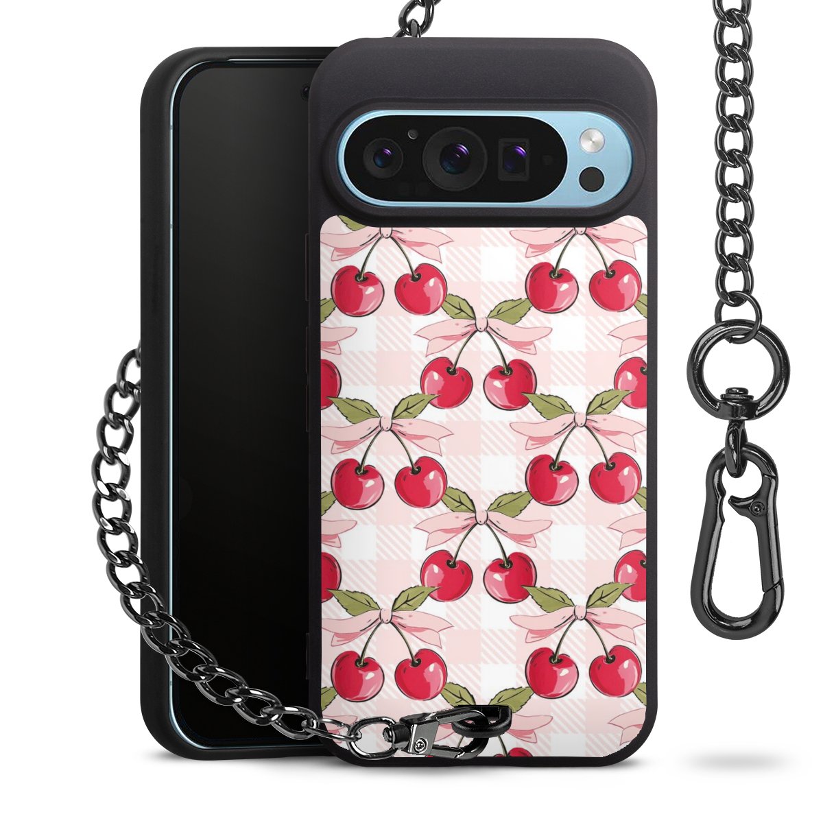 • Mattschwarze Handyhülle mit Metallkette