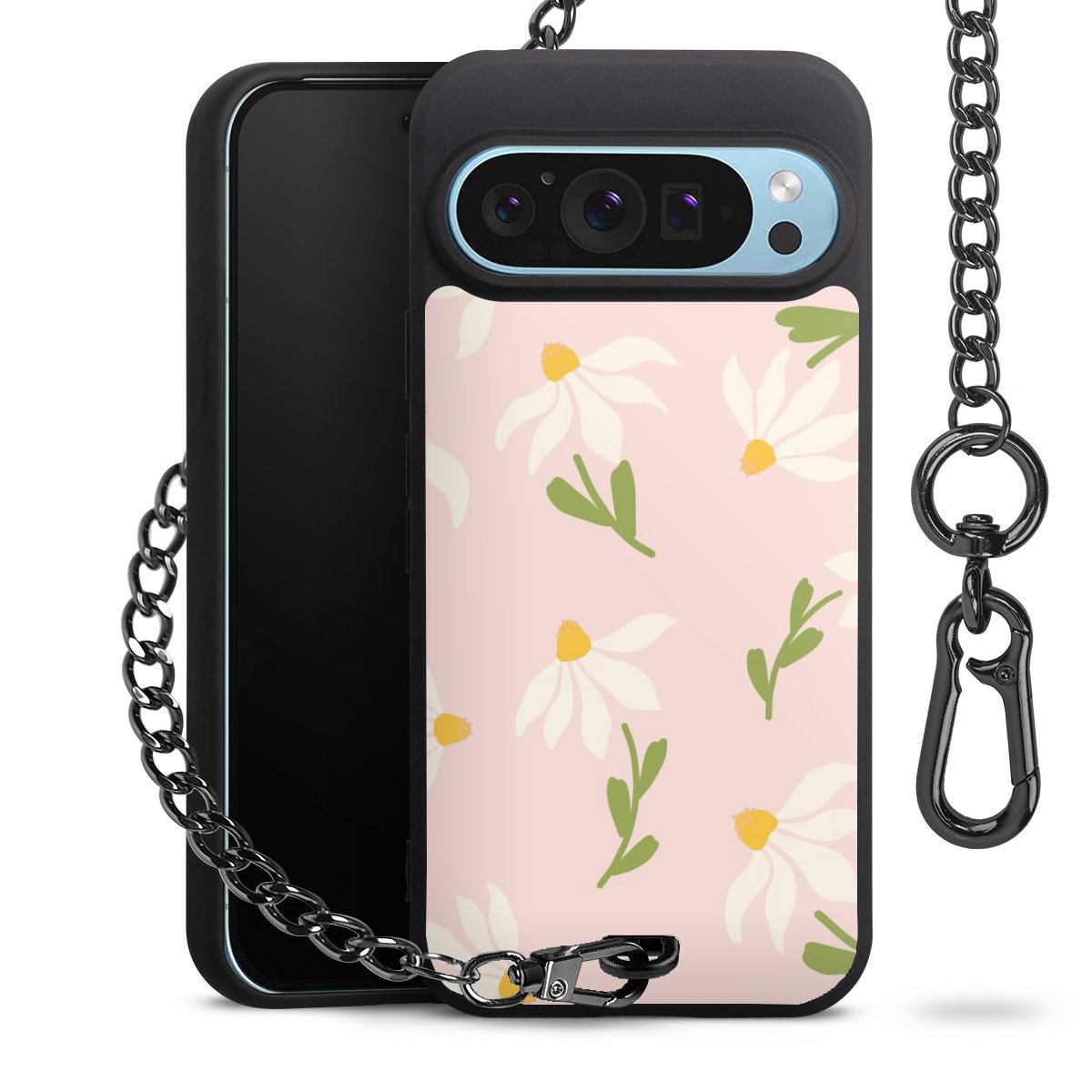 • Mattschwarze Handyhülle mit Metallkette