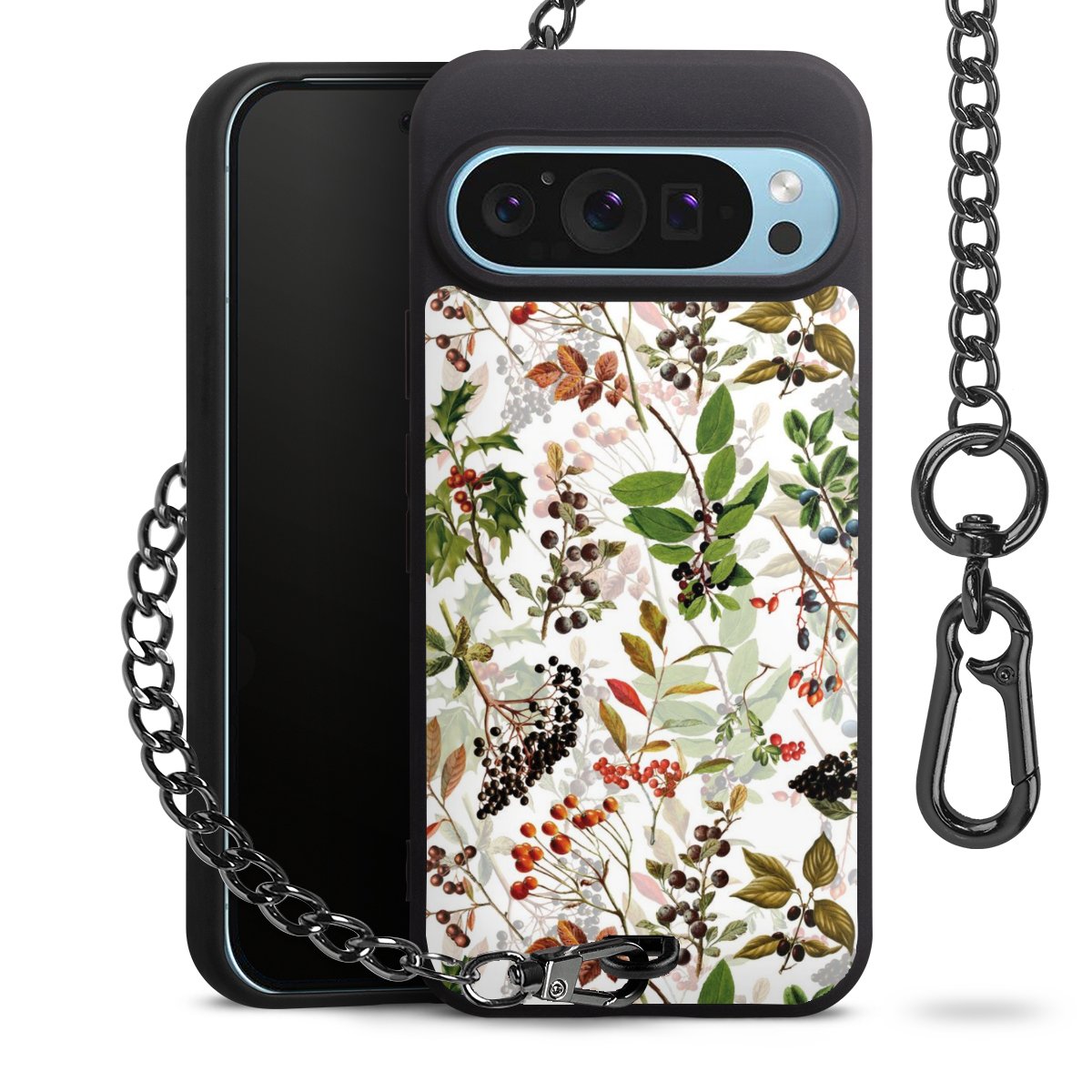 • Mattschwarze Handyhülle mit Metallkette