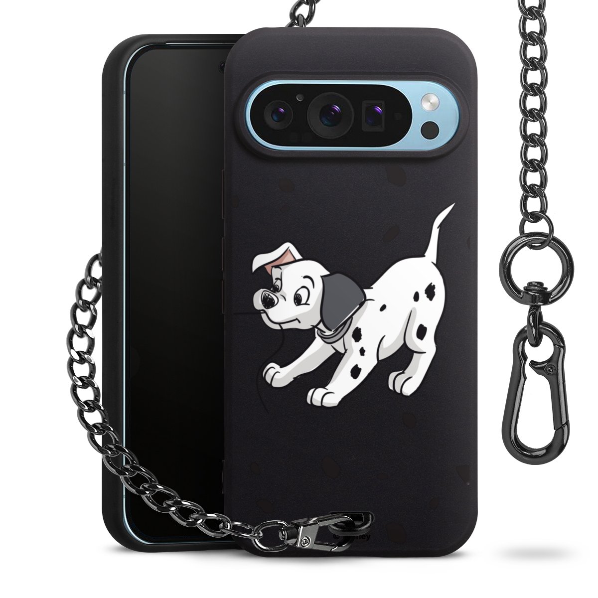 Die mattschwarze Silikon-Handyhülle besteht aus robustem TPU (thermoplastisches Polyurethan). Sie ist flexibel und schützt Dein Smartphone vor Stößen und Kratzern. Die Kette sowie der Karabinerhaken sind aus Metall in Gunmetal-Optik gefertigt. Für dieses Produkt kommen ausschließlich TÜV-geprüfte Materialien zum Einsatz.