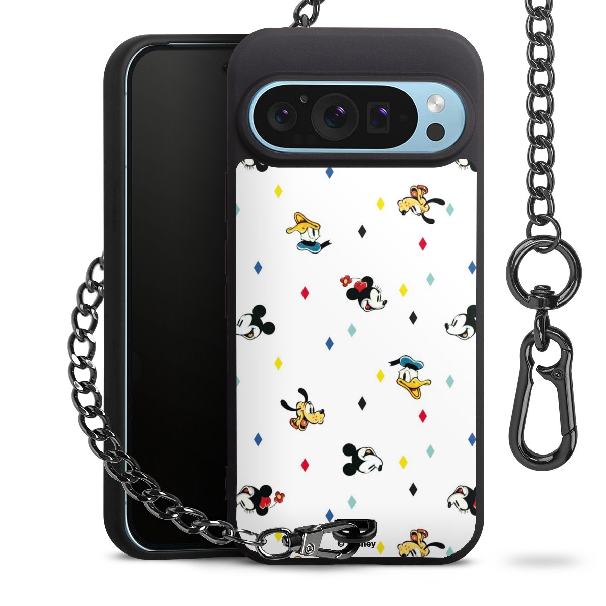• Mattschwarze Handyhülle mit Metallkette