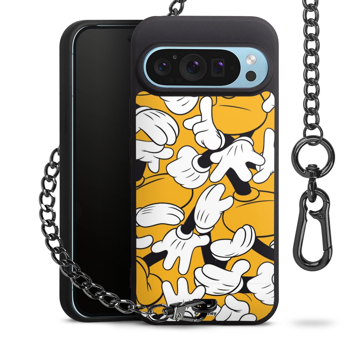 Die mattschwarze Silikon-Handyhülle besteht aus robustem TPU (thermoplastisches Polyurethan). Sie ist flexibel und schützt Dein Smartphone vor Stößen und Kratzern. Die Kette sowie der Karabinerhaken sind aus Metall in Gunmetal-Optik gefertigt. Für dieses Produkt kommen ausschließlich TÜV-geprüfte Materialien zum Einsatz.