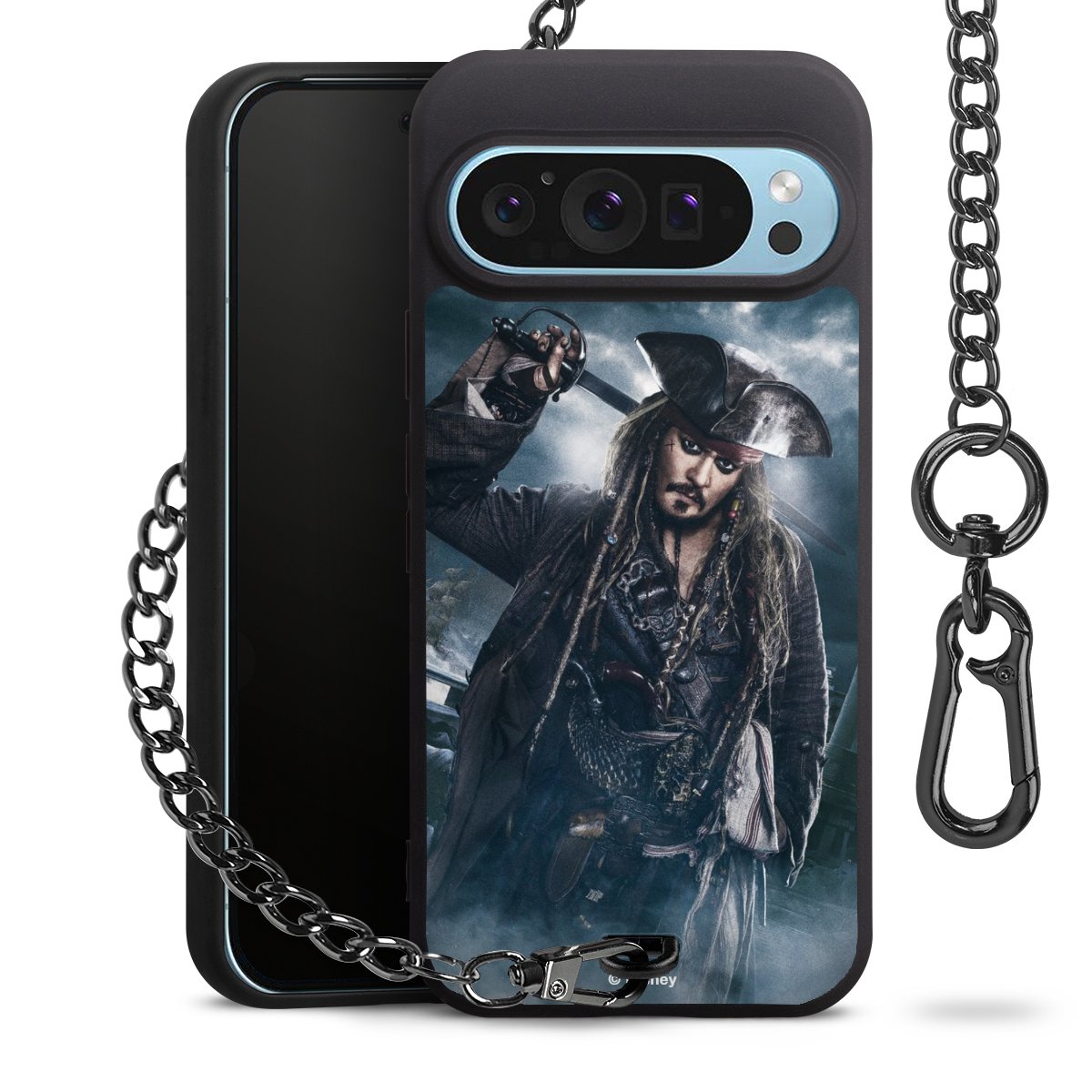 • Mattschwarze Handyhülle mit Metallkette