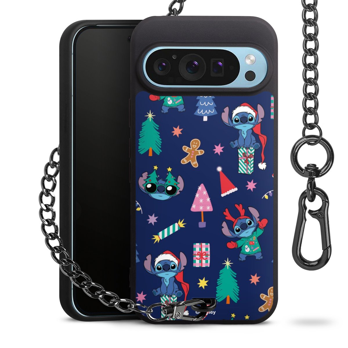 • Mattschwarze Handyhülle mit Metallkette