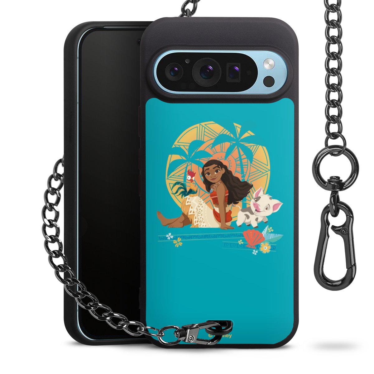 - Mattschwarze Handyhülle mit Metallkette