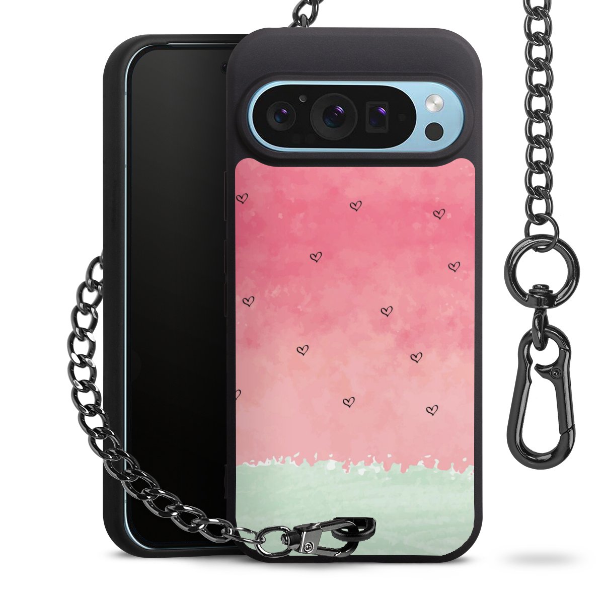 - Mattschwarze Handyhülle mit Metallkette