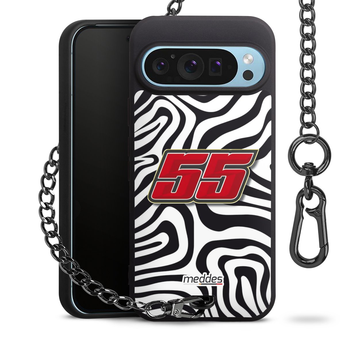 • Mattschwarze Handyhülle mit Metallkette