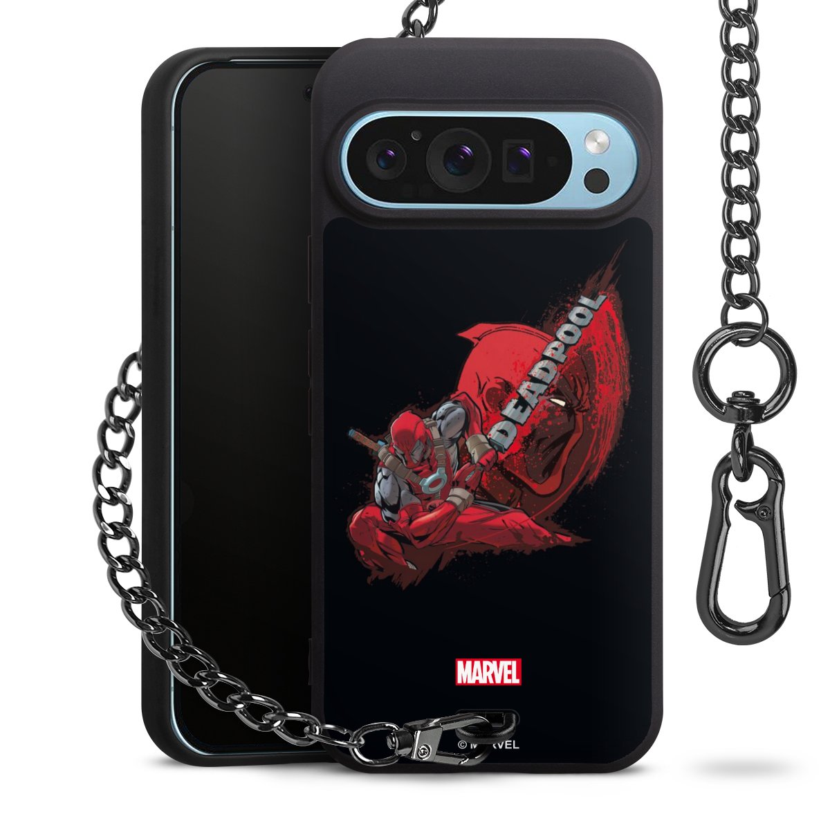 Die mattschwarze Silikon-Handyhülle besteht aus robustem TPU (thermoplastisches Polyurethan). Sie ist flexibel und schützt Dein Smartphone vor Stößen und Kratzern. Die Kette sowie der Karabinerhaken sind aus Metall in Gunmetal-Optik gefertigt. Für dieses Produkt kommen ausschließlich TÜV-geprüfte Materialien zum Einsatz.