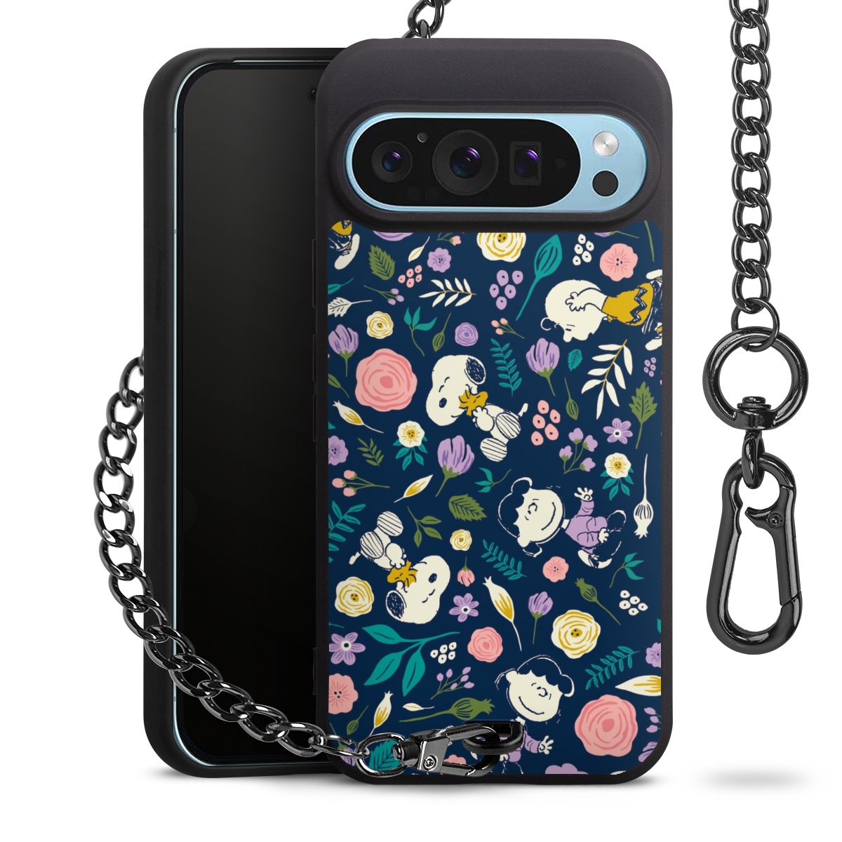 • Mattschwarze Handyhülle mit Metallkette