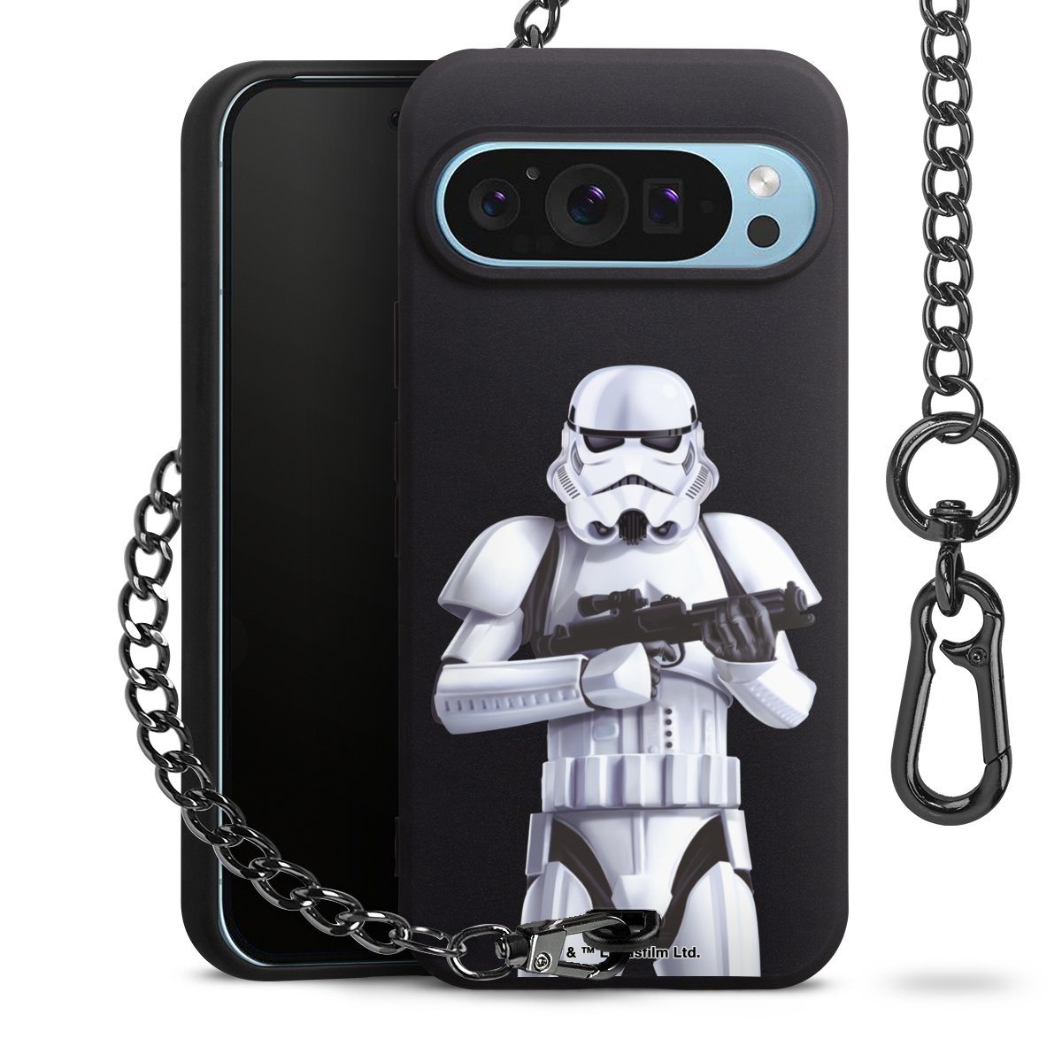 Die mattschwarze Silikon-Handyhülle besteht aus robustem TPU (thermoplastisches Polyurethan). Sie ist flexibel und schützt Dein Smartphone vor Stößen und Kratzern. Die Kette sowie der Karabinerhaken sind aus Metall in Gunmetal-Optik gefertigt. Für dieses Produkt kommen ausschließlich TÜV-geprüfte Materialien zum Einsatz.