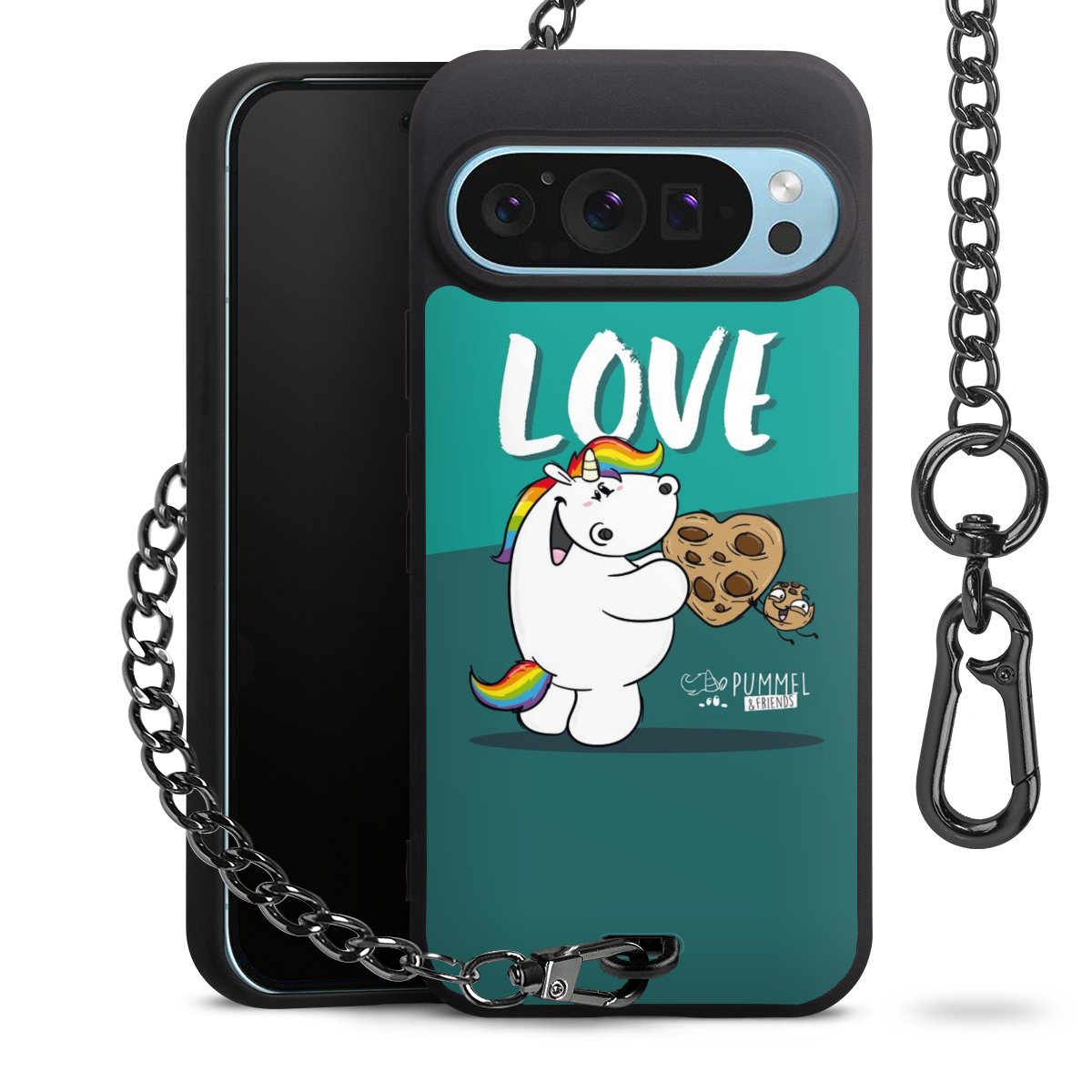 Die mattschwarze Silikon-Handyhülle besteht aus robustem TPU (thermoplastisches Polyurethan). Sie ist flexibel und schützt Dein Smartphone vor Stößen und Kratzern. Die Kette sowie der Karabinerhaken sind aus Metall in Gunmetal-Optik gefertigt. Für dieses Produkt kommen ausschließlich TÜV-geprüfte Materialien zum Einsatz.
