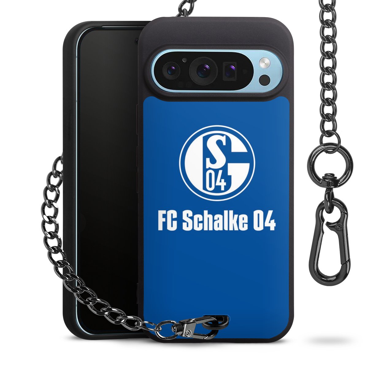 Die mattschwarze Silikon-Handyhülle besteht aus robustem TPU (thermoplastisches Polyurethan). Sie ist flexibel und schützt Dein Smartphone vor Stößen und Kratzern. Die Kette sowie der Karabinerhaken sind aus Metall in Gunmetal-Optik gefertigt. Für dieses Produkt kommen ausschließlich TÜV-geprüfte Materialien zum Einsatz.