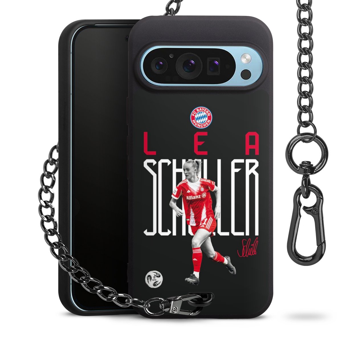 • Mattschwarze Handyhülle mit Metallkette