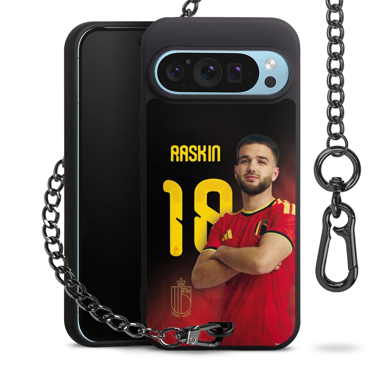 Die mattschwarze Silikon-Handyhülle besteht aus robustem TPU (thermoplastisches Polyurethan). Sie ist flexibel und schützt Dein Smartphone vor Stößen und Kratzern. Die Kette sowie der Karabinerhaken sind aus Metall in Gunmetal-Optik gefertigt. Für dieses Produkt kommen ausschließlich TÜV-geprüfte Materialien zum Einsatz.