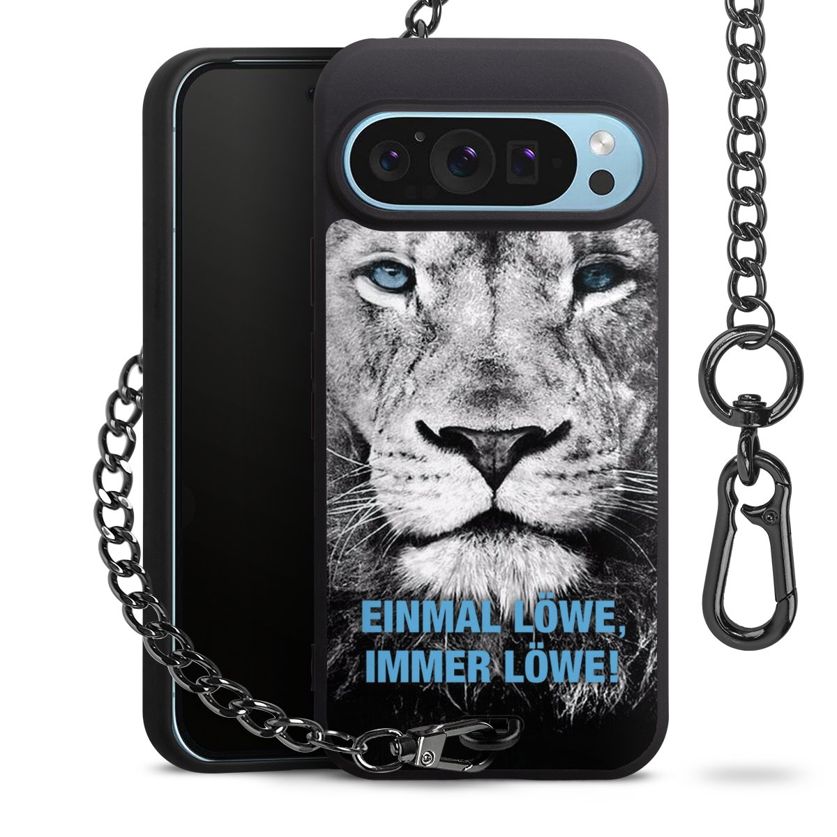 Die mattschwarze Silikon-Handyhülle besteht aus robustem TPU (thermoplastisches Polyurethan). Sie ist flexibel und schützt Dein Smartphone vor Stößen und Kratzern. Die Kette sowie der Karabinerhaken sind aus Metall in Gunmetal-Optik gefertigt. Für dieses Produkt kommen ausschließlich TÜV-geprüfte Materialien zum Einsatz.