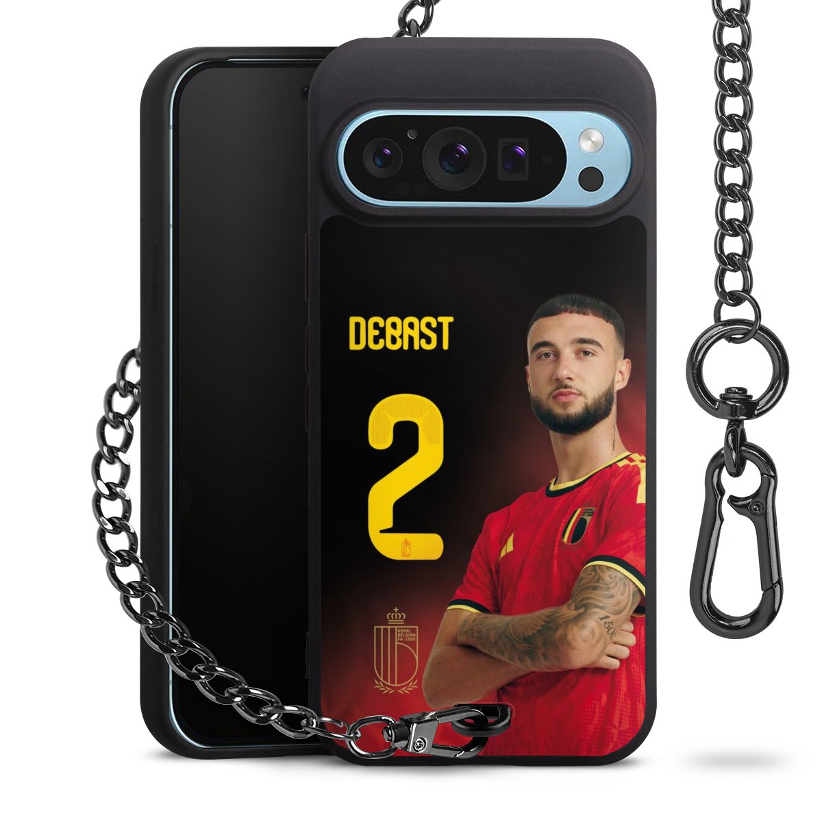 Die mattschwarze Silikon-Handyhülle besteht aus robustem TPU (thermoplastisches Polyurethan). Sie ist flexibel und schützt Dein Smartphone vor Stößen und Kratzern. Die Kette sowie der Karabinerhaken sind aus Metall in Gunmetal-Optik gefertigt. Für dieses Produkt kommen ausschließlich TÜV-geprüfte Materialien zum Einsatz.