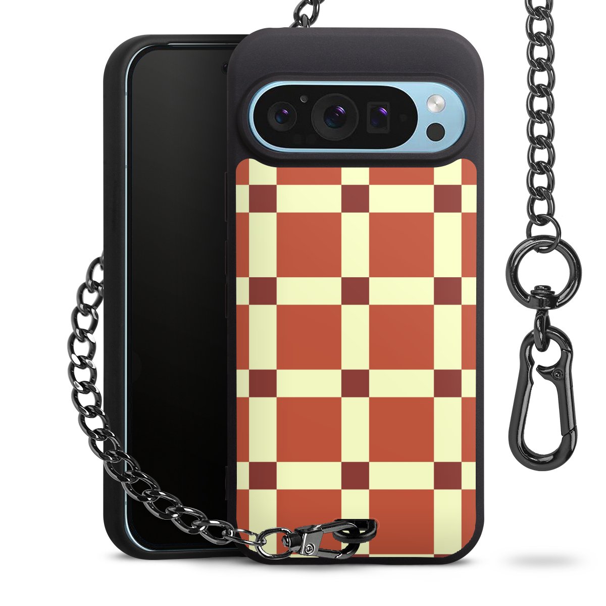 • Mattschwarze Handyhülle mit Metallkette