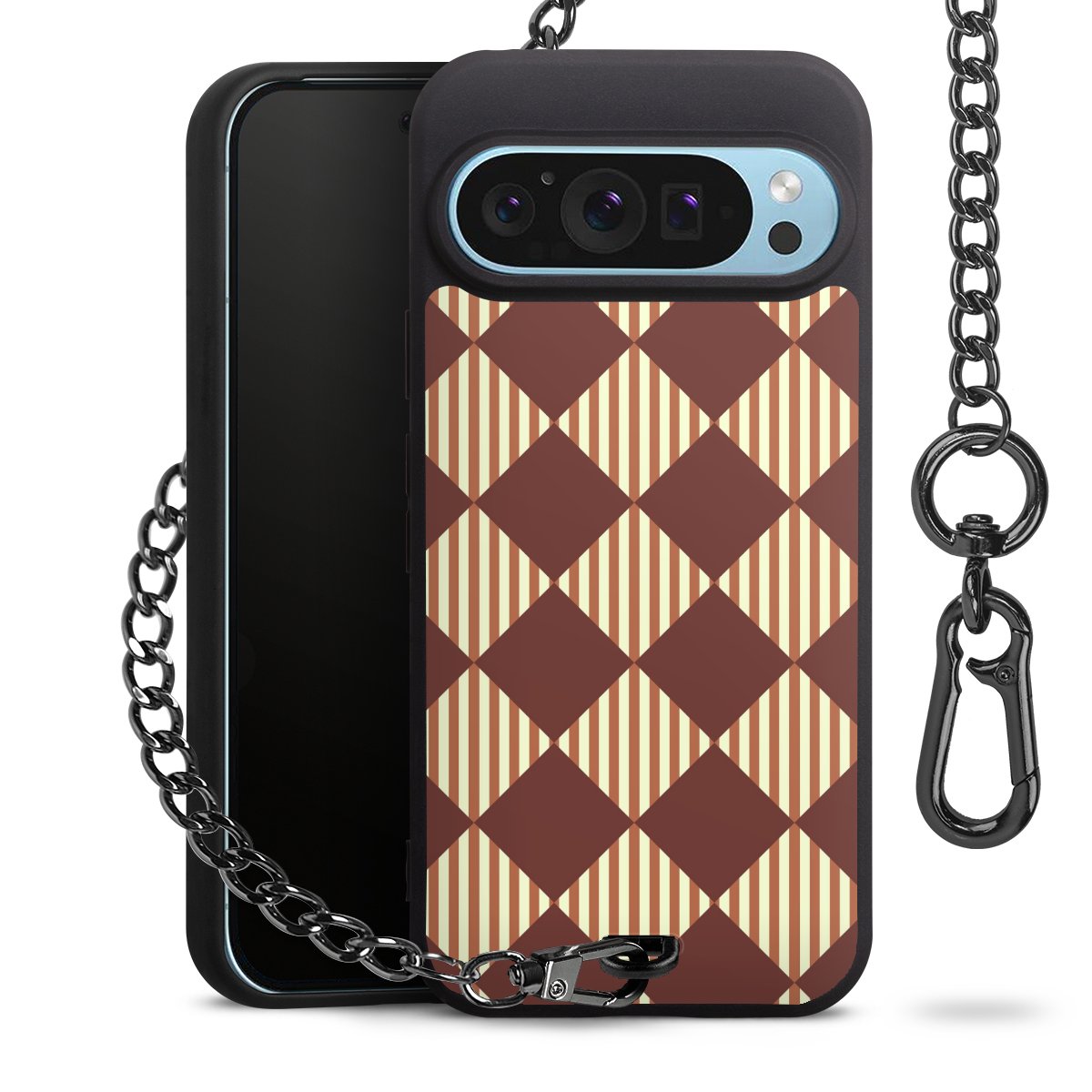 - Mattschwarze Handyhülle mit Metallkette