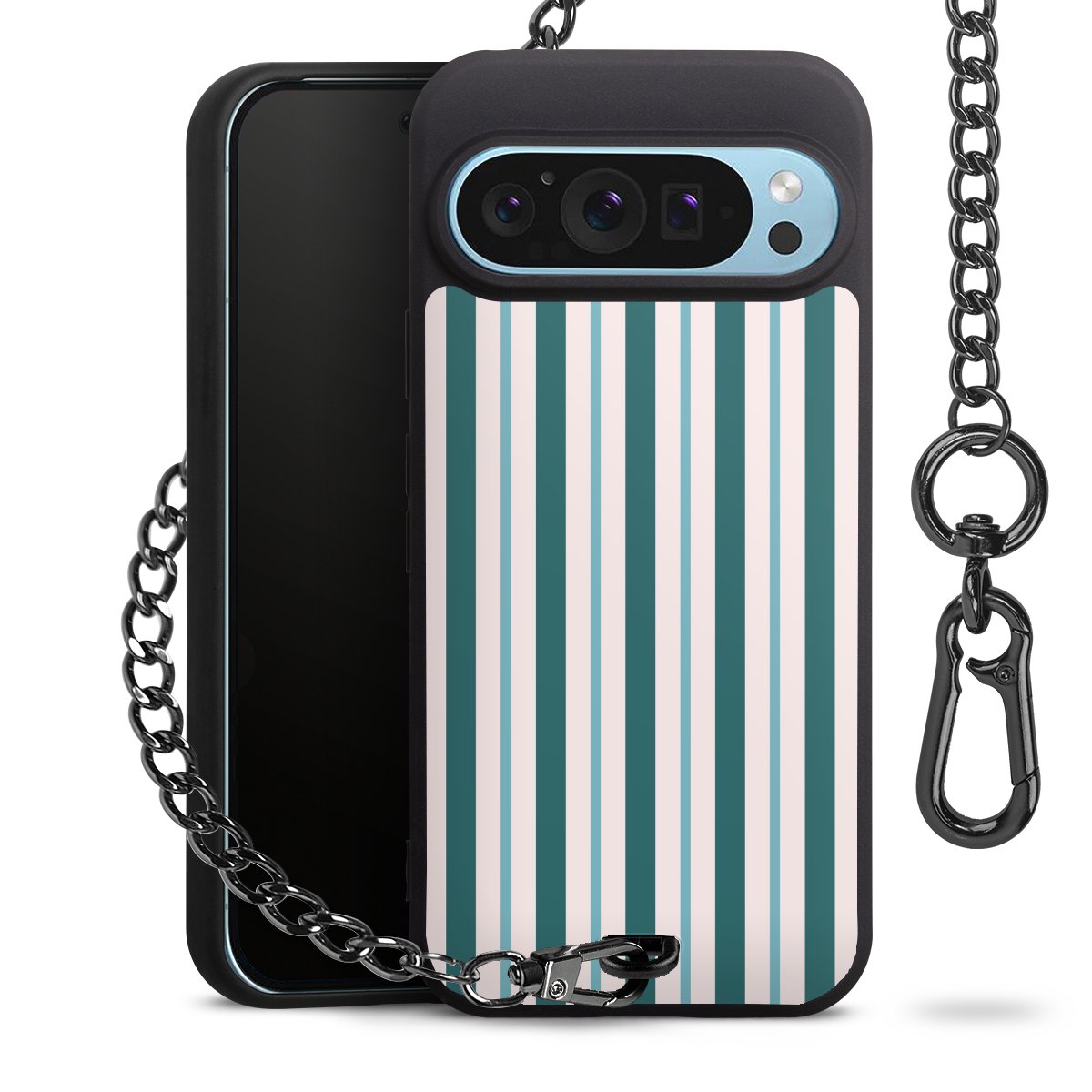 - Mattschwarze Handyhülle mit Metallkette