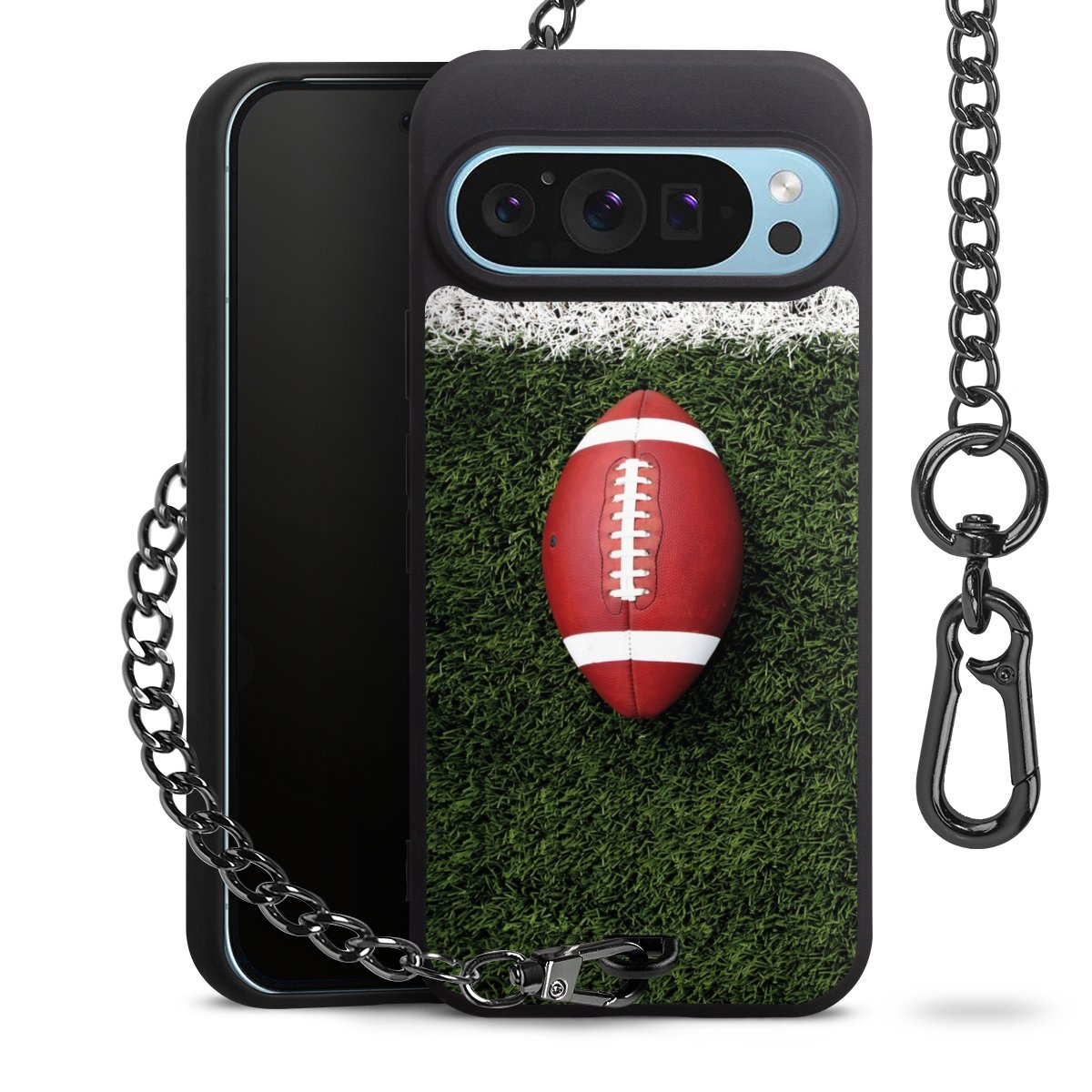 - Mattschwarze Handyhülle mit Metallkette