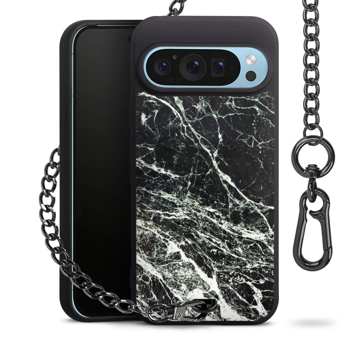 - Mattschwarze Handyhülle mit Metallkette