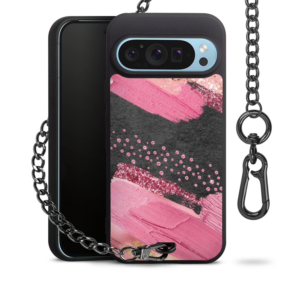 • Mattschwarze Handyhülle mit Metallkette