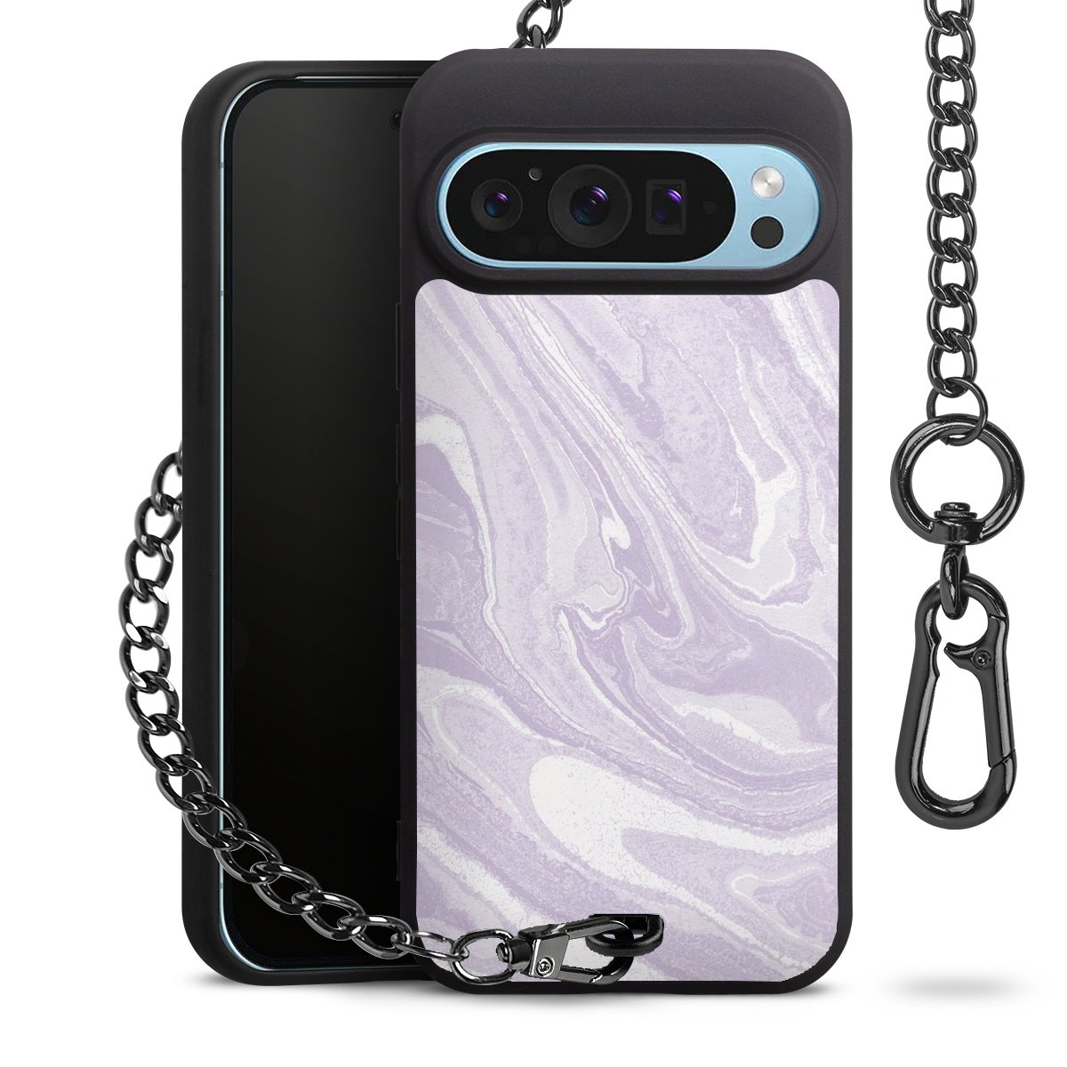 • Mattschwarze Handyhülle mit Metallkette