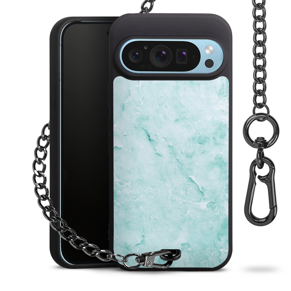 • Mattschwarze Handyhülle mit Metallkette