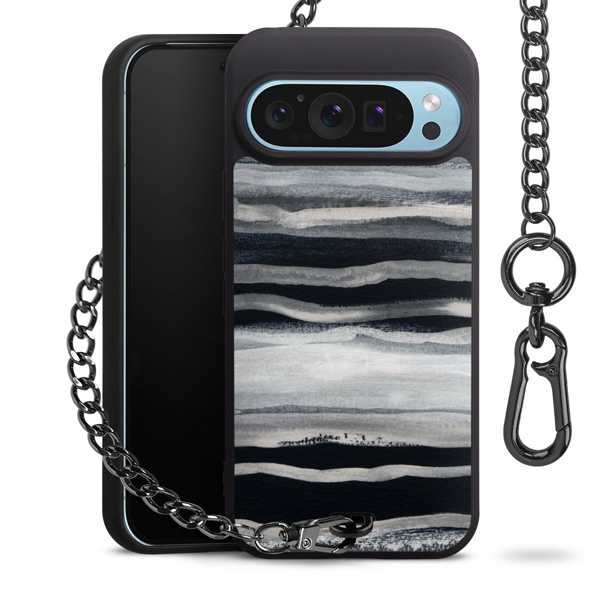 • Mattschwarze Handyhülle mit Metallkette