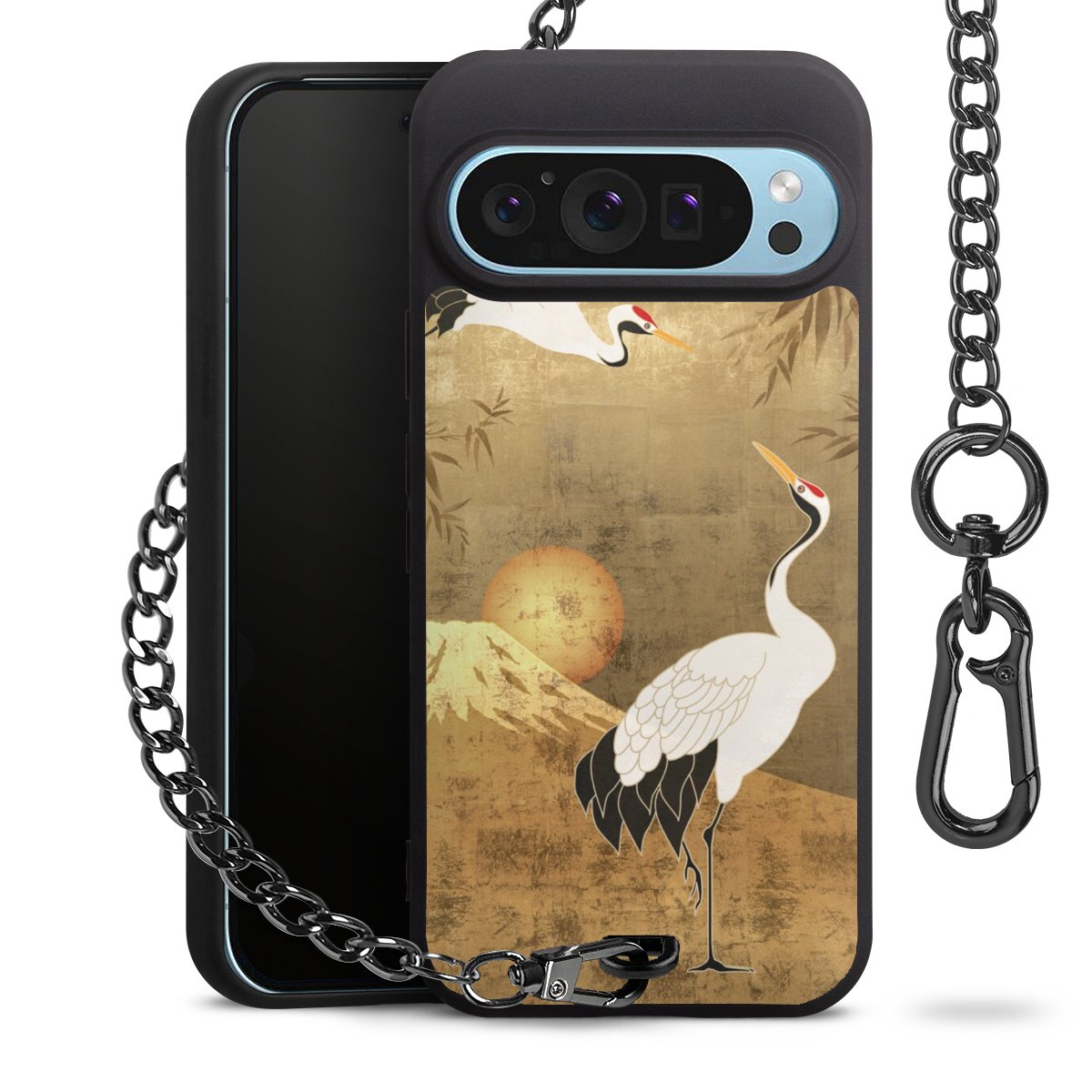 • Mattschwarze Handyhülle mit Metallkette