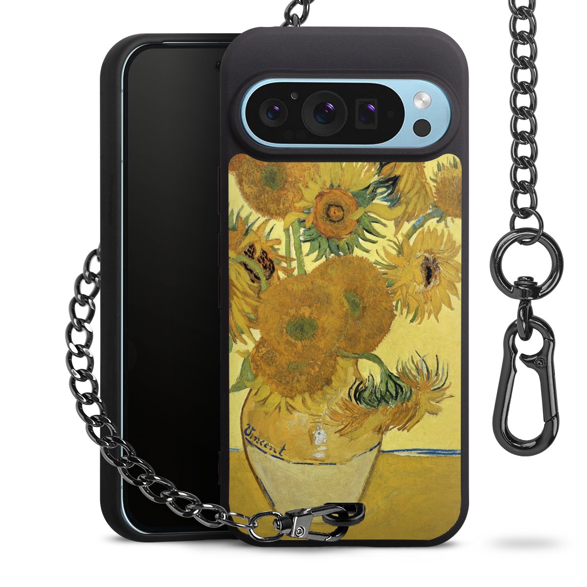 Die mattschwarze Silikon-Handyhülle besteht aus robustem TPU (thermoplastisches Polyurethan). Sie ist flexibel und schützt Dein Smartphone vor Stößen und Kratzern. Die Kette sowie der Karabinerhaken sind aus Metall in Gunmetal-Optik gefertigt. Für dieses Produkt kommen ausschließlich TÜV-geprüfte Materialien zum Einsatz.