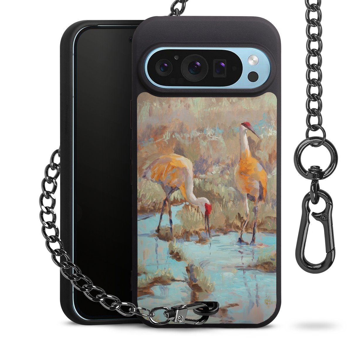 • Mattschwarze Handyhülle mit Metallkette