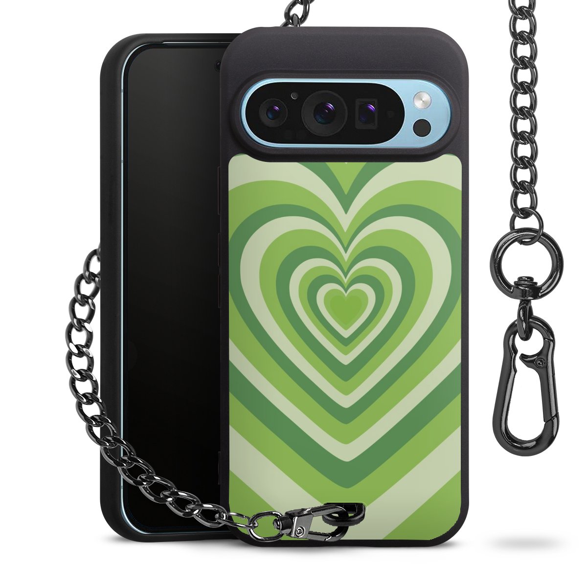 - Mattschwarze Handyhülle mit Metallkette