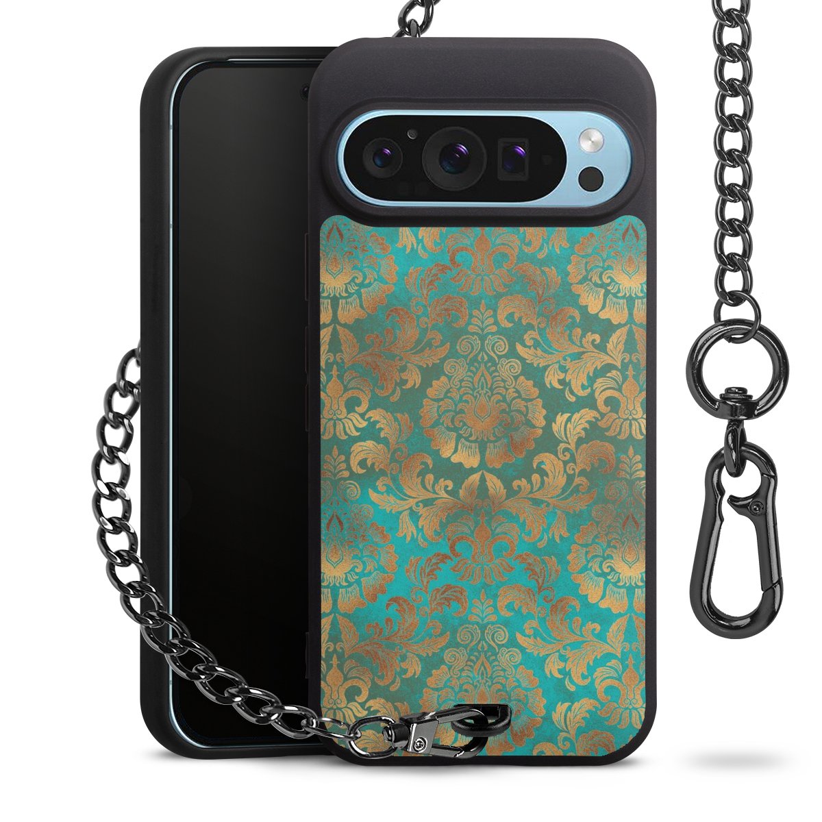 • Mattschwarze Handyhülle mit Metallkette