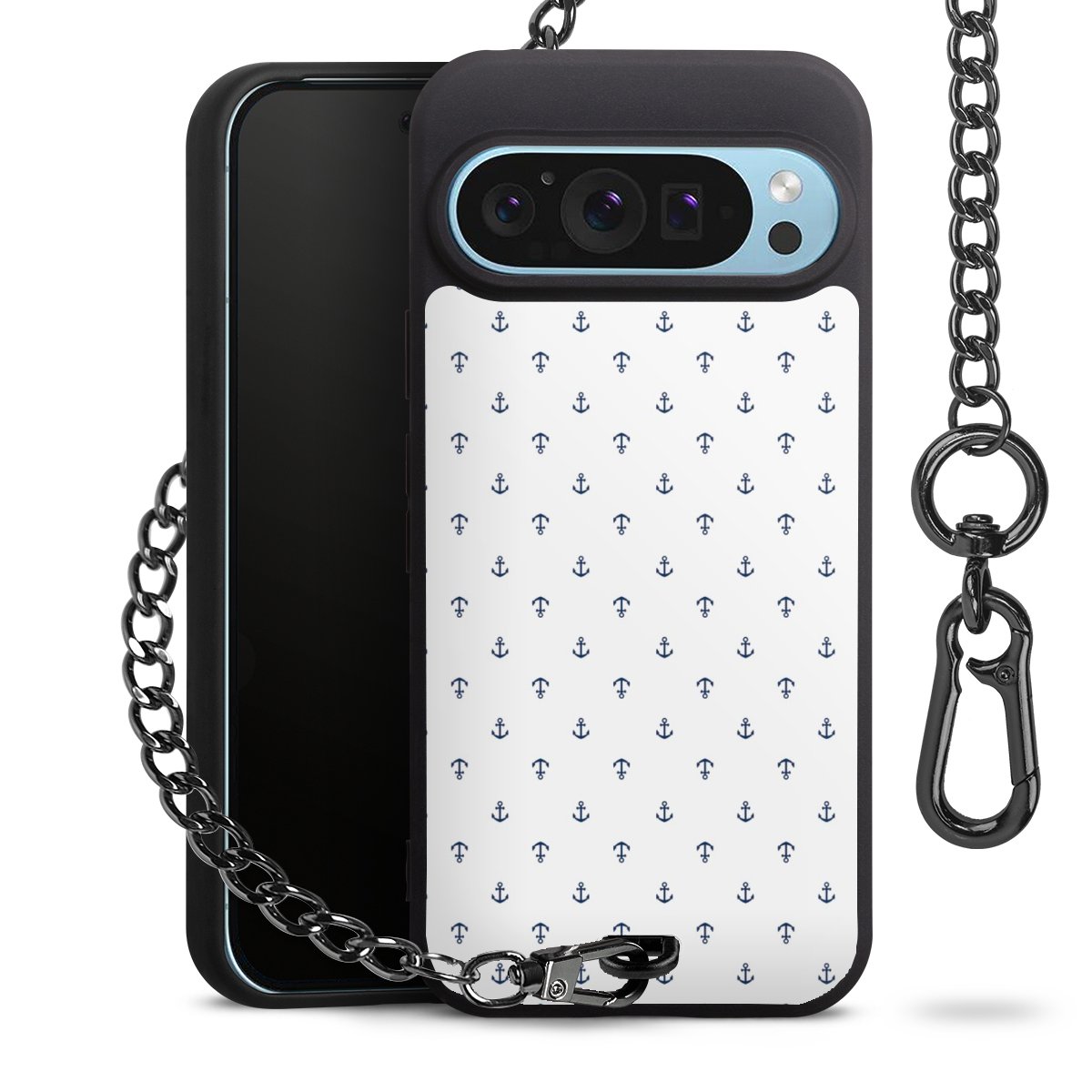 - Mattschwarze Handyhülle mit Metallkette