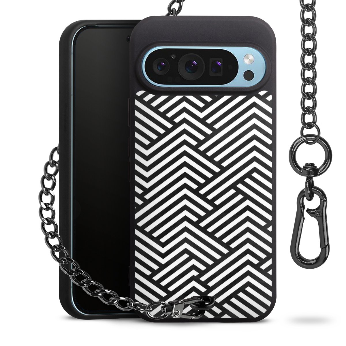 • Mattschwarze Handyhülle mit Metallkette