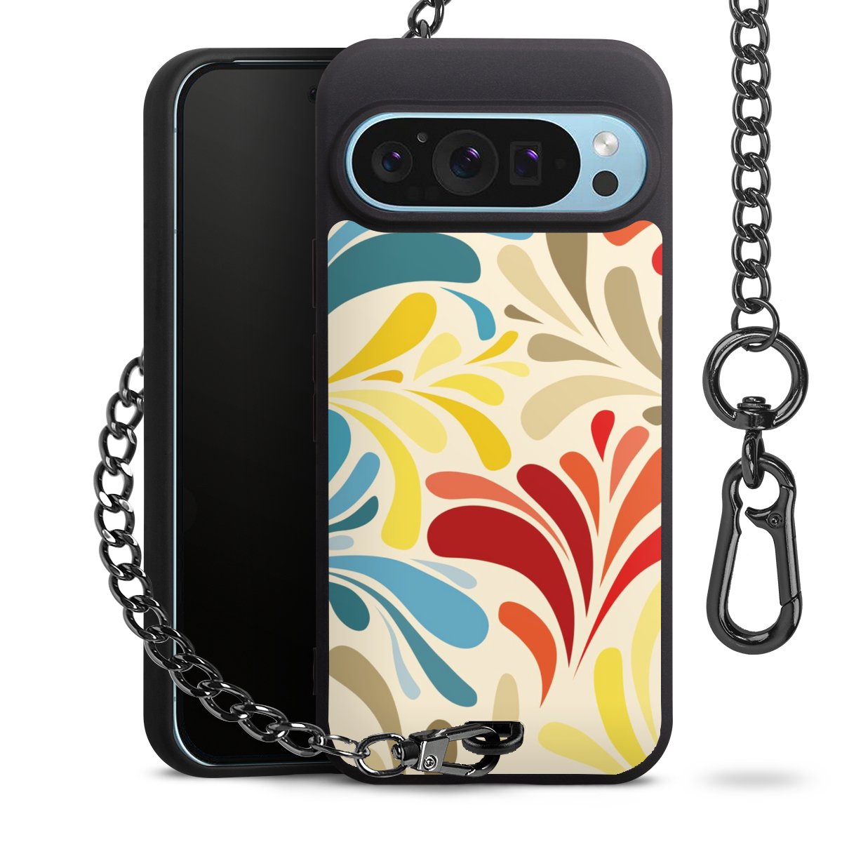 - Mattschwarze Handyhülle mit Metallkette