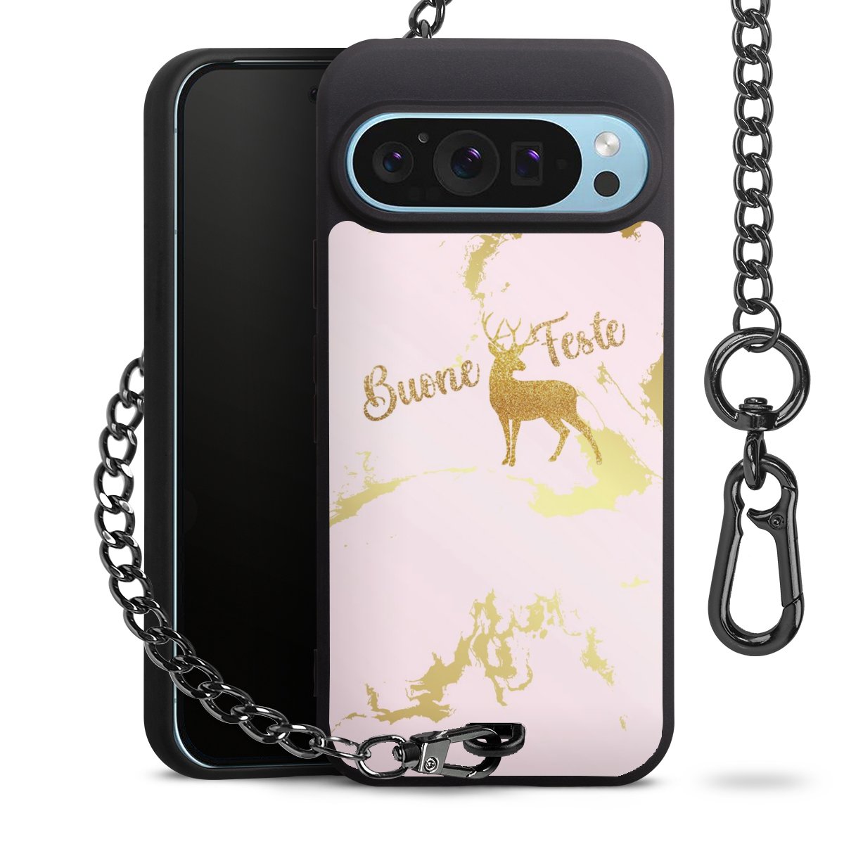 - Mattschwarze Handyhülle mit Metallkette